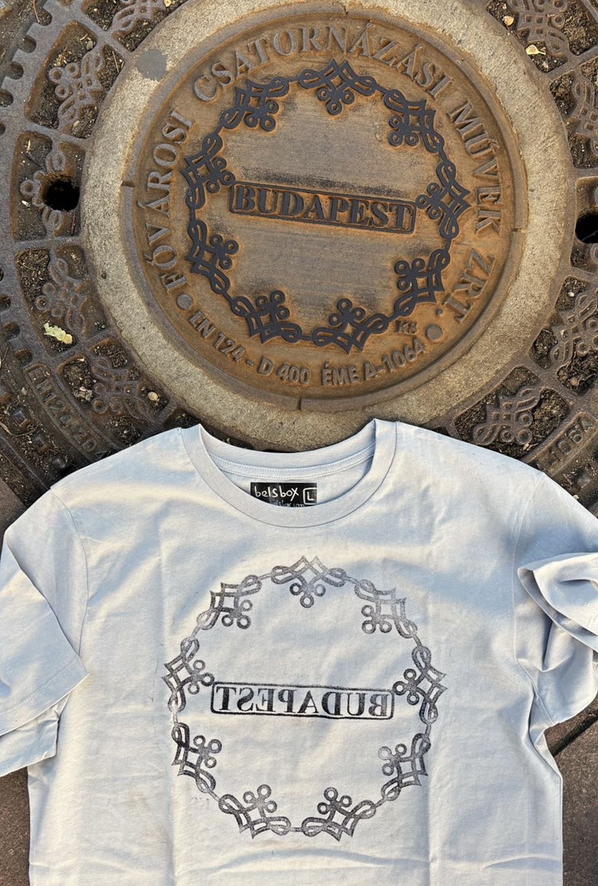 This isn’t just a t-shirt. It’s street art you can wear — straight from the streets of Budapest. The print was made directly from a real manhole cover in the city (yes, really!), and features the name BUDAPEST proudly stamped on the chest.