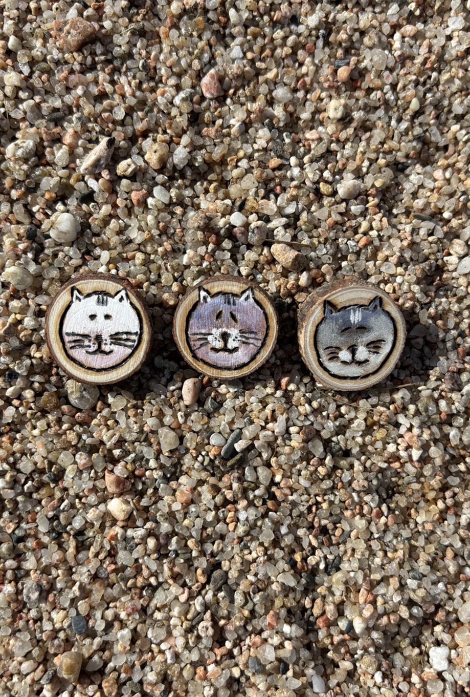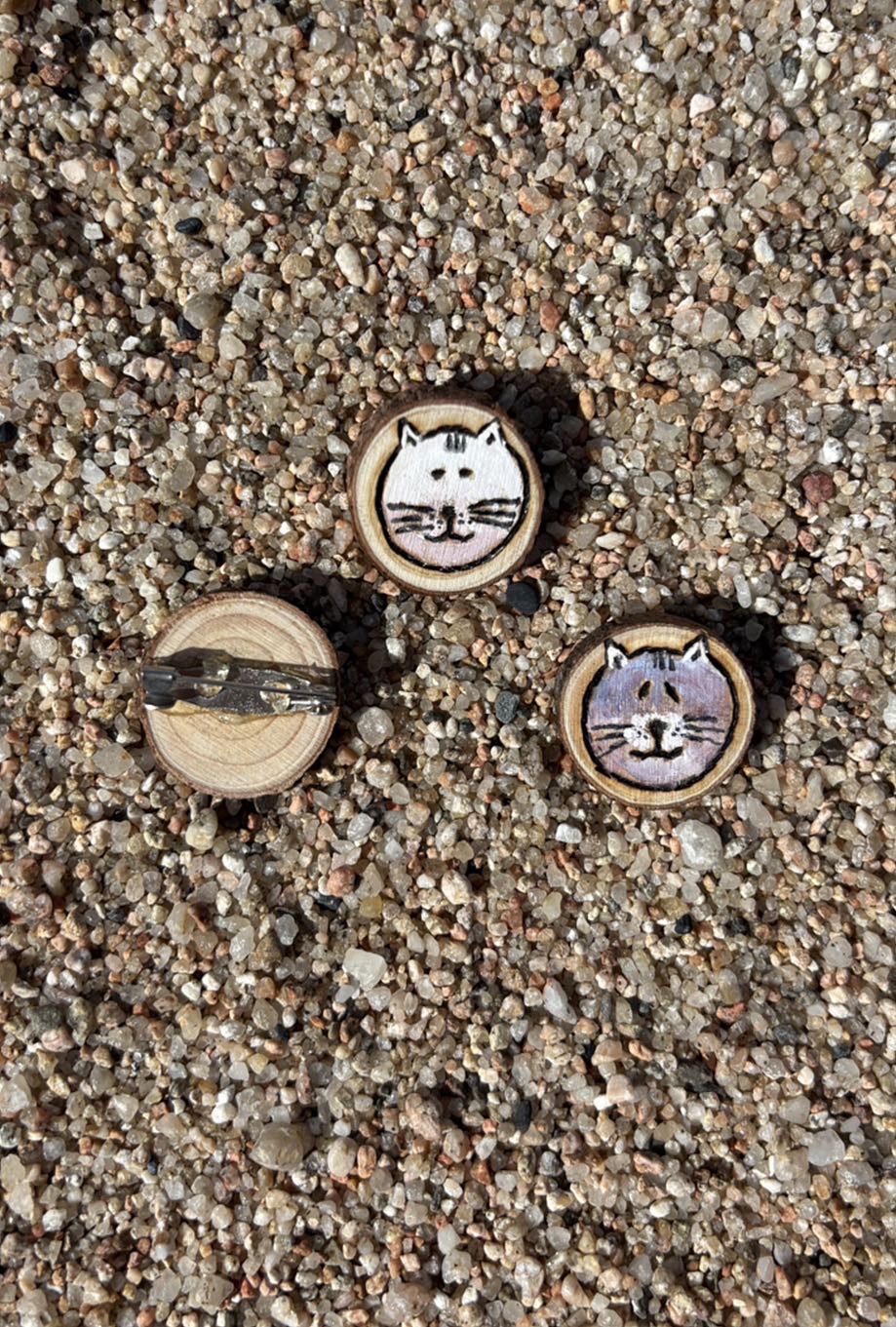 Tiny but absolutely adorable! This miniature wooden pin features a hand-burned cat face on a natural wood circle just 1 cm in diameter. Lightweight, eco-friendly, and full of charm, it’s perfect for decorating jackets, backpacks, pencil cases, or anything that needs a touch of feline cuteness.