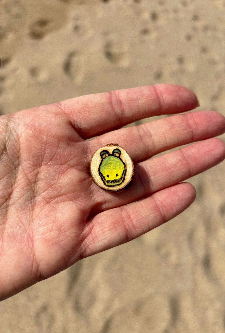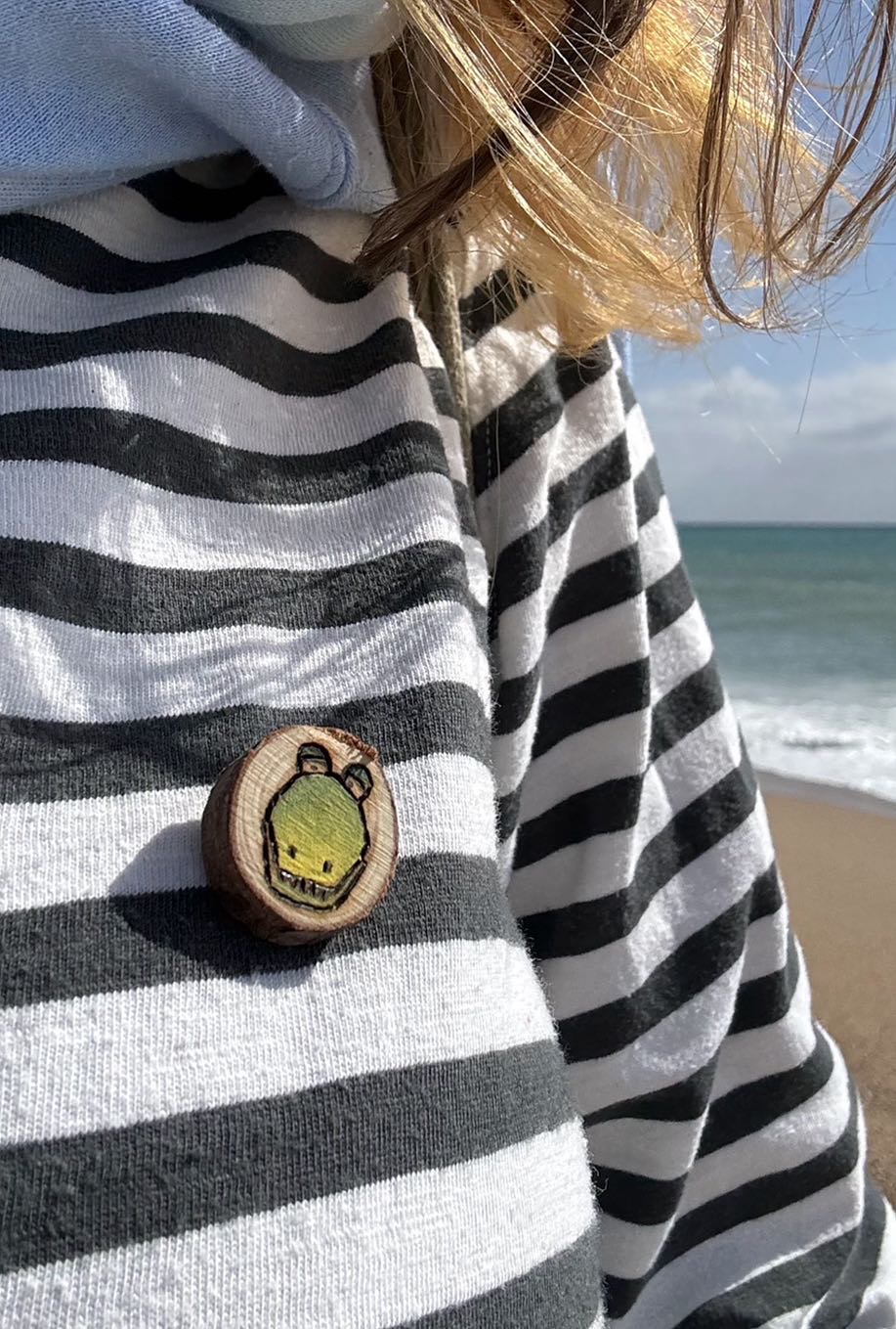 Tiny but wildly cool! This miniature wooden pin features a hand-burned crocodile face, carefully etched onto a natural wood circle just 1 cm in diameter. It’s the perfect mix of cute and fierce — a small detail with big personality.