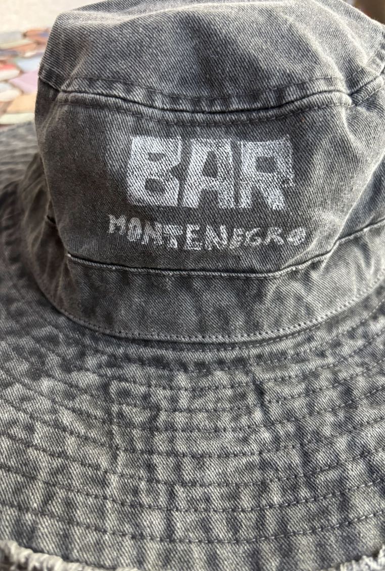 Our denim bucket hat features an original hand-printed linocut design with two iconic words: BAR (yes, the town and the lifestyle), and Montenegro (because once you’ve been, you get it).