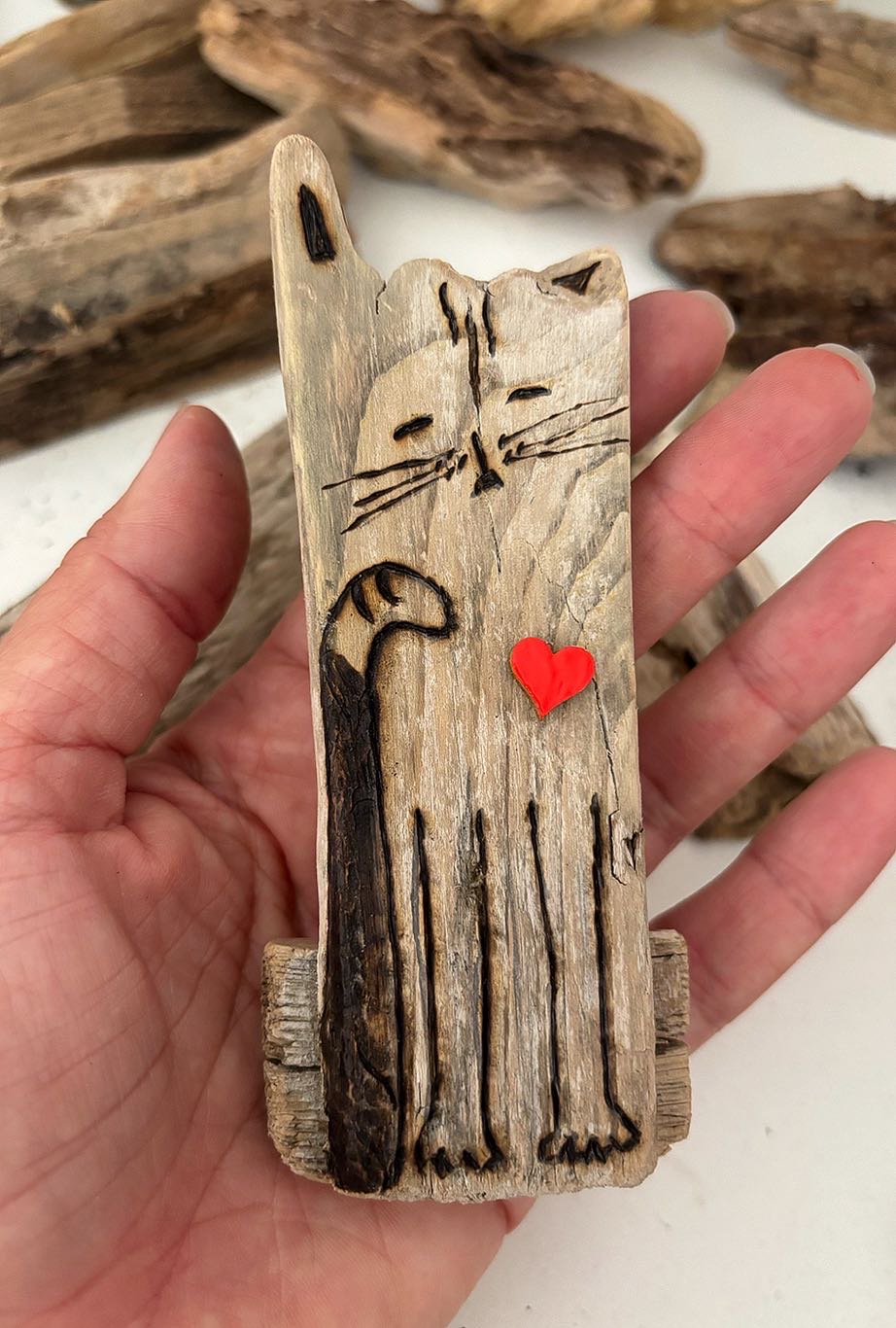 Add a bit of seaside soul and feline sass to your home — this driftwood cat is ready to purr, silently, from its perch.