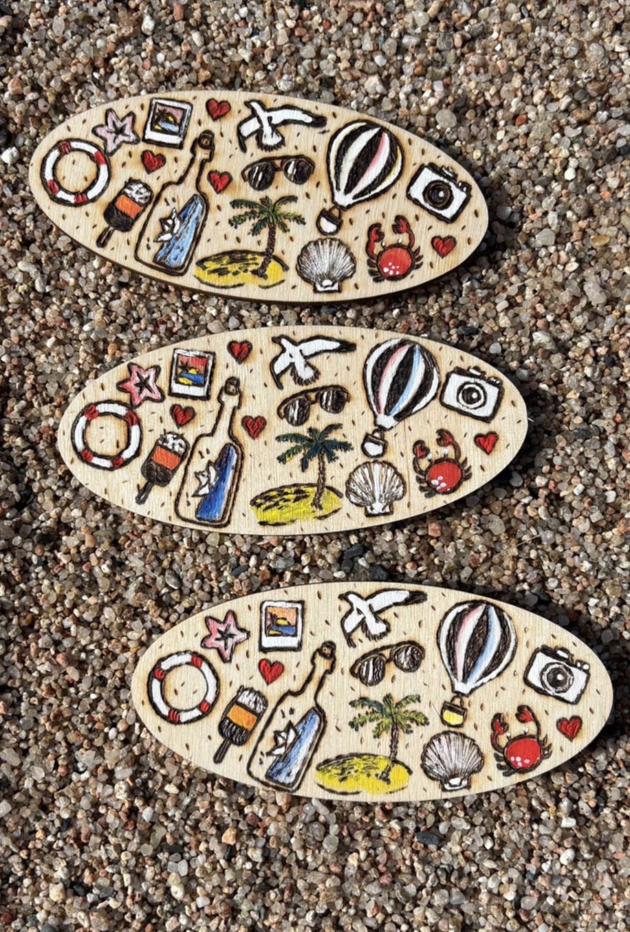 Technique and materials: wood burning,magnet, paint.